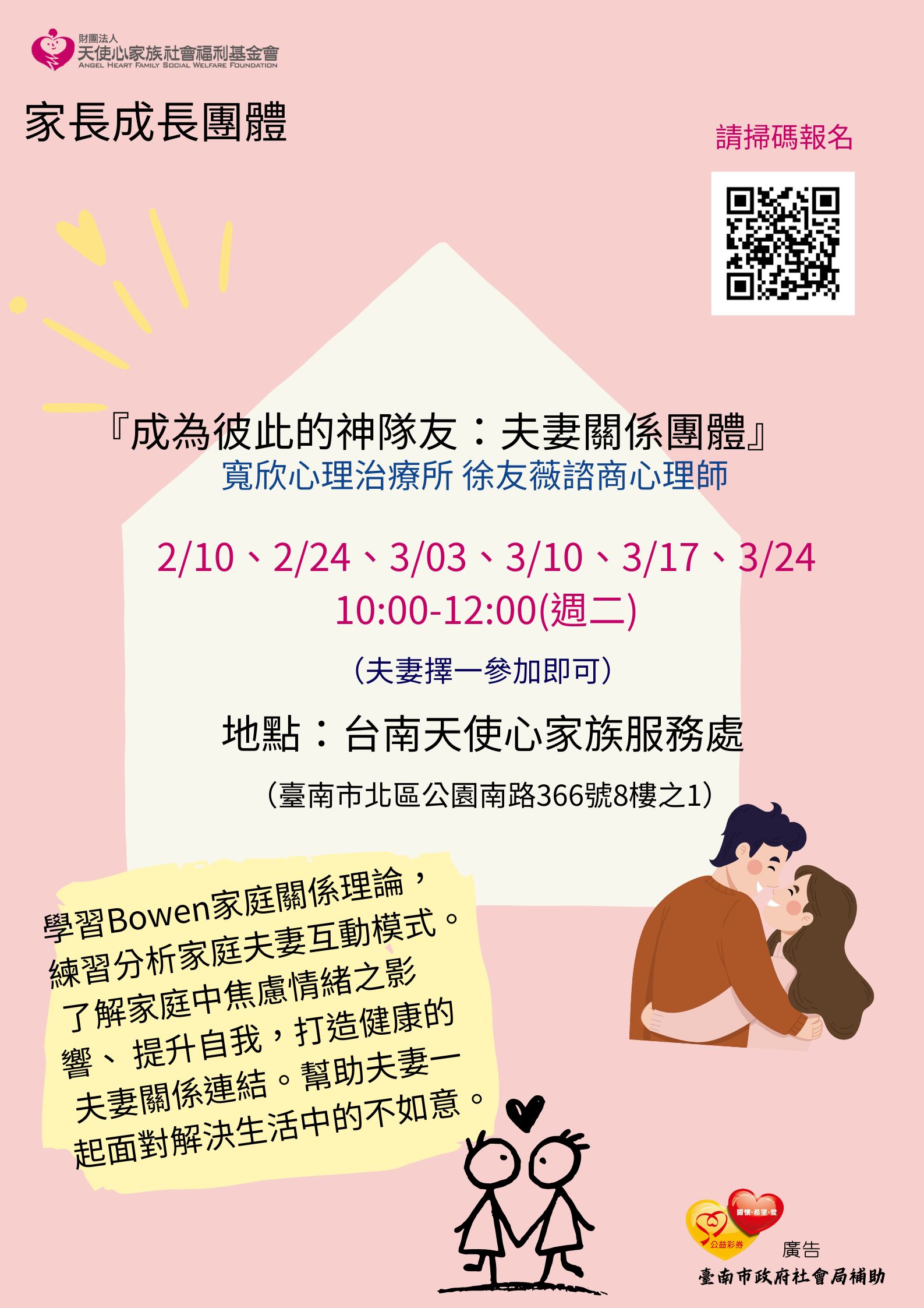 地點:台南天使心家族服務處 (臺南市北區公園南路366號8樓之1)
